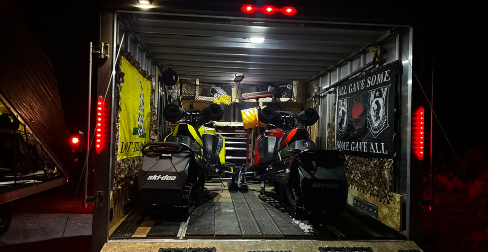 Tie-Downs and Track Protection: Comes with two custom tie-downs specifically designed for securely transporting snowmobiles, including mats and glides to accommodate two machines.